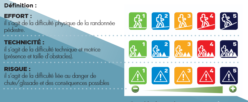 La conjugaison de ces 3 critères permet d’exprimer la réelle difficulté de chaque rando.